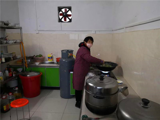 如此高強(qiáng)度的勞動,對于年過六旬的她實(shí)在有些繁重。但吳素霞從未抱怨一聲,依然笑臉相迎每一位就餐者。她說:“我身為一名共產(chǎn)黨員,雖然無法到一線去防控疫情,但保障好大家的伙食是我義不容辭的責(zé)任。大伙吃好了才能抵御冬日的寒風(fēng),安心站崗、舒心宣傳。相信在大伙的辛勤努力下,咱鄉(xiāng)一定會戰(zhàn)勝病毒,疫情一定會早日解除?!?/p>