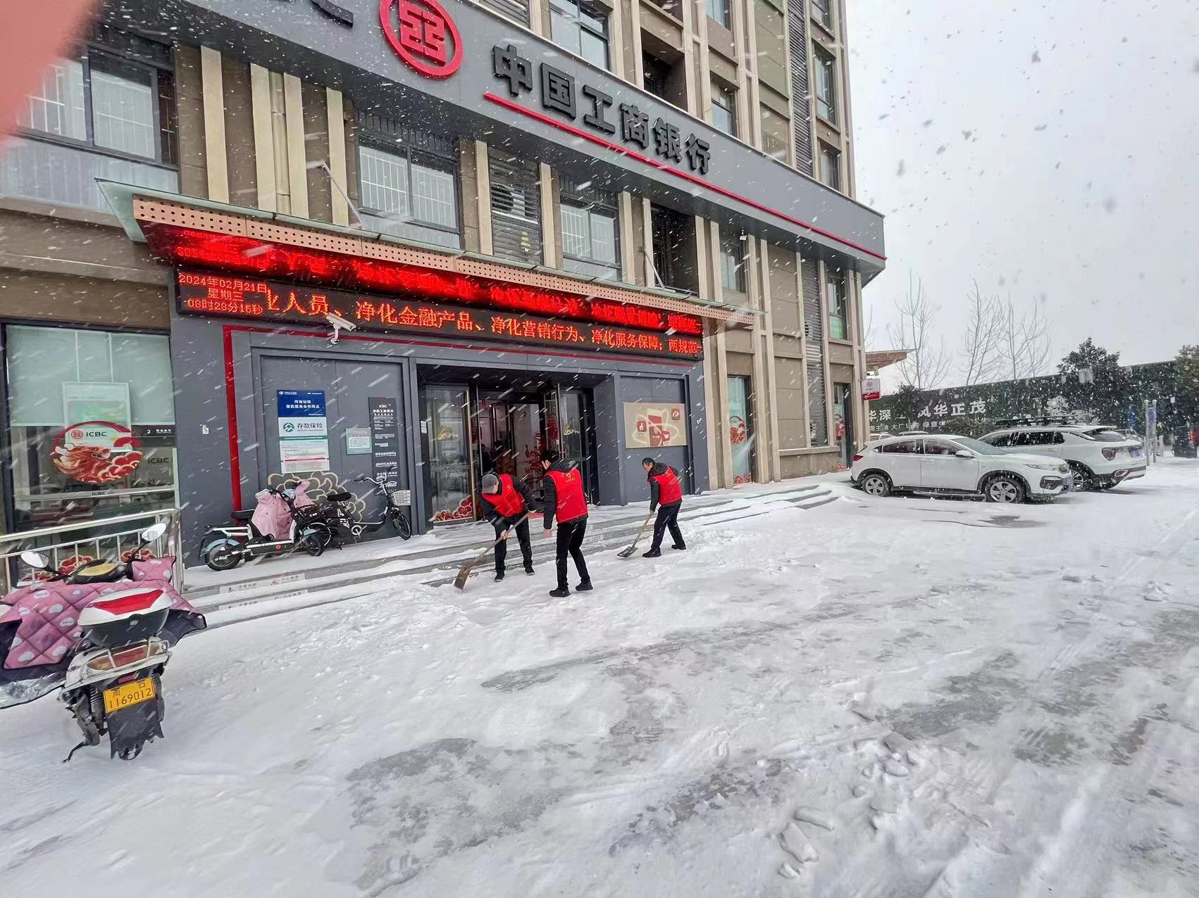 2月20日以來,周口市連降雨雪。工行周口分行迅速行動組織開展清除積雪活動。