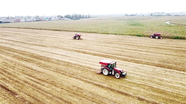 10月14日,市城鄉(xiāng)一體化示范區(qū)許灣街道孔莊村村民在田間耕作。連日陰雨暫歇,農(nóng)戶們利用晴好天氣,與時間賽跑,抓緊秋播。記者 劉俊濤 攝